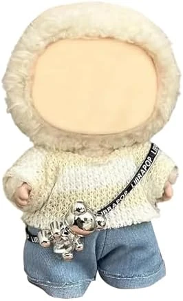 17cm Doll Clothes(NO Doll), Cute Dolls Outfit Accessories With Sweater + Denim Jeans + Pants, Small Kawaii Clothes Set For Dolls(Style 4)