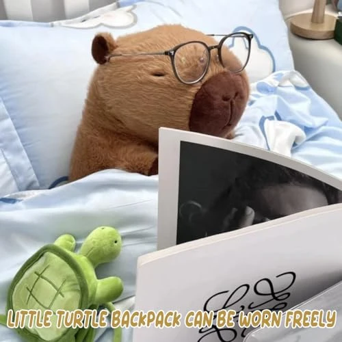 Capybara Plush Toy – 9 Inch Cute Capybara Stuffed Animal With Turtle Backpack, Kawaii Capibara Plushie For Kids And Adults