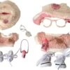 Clothes For Labub, 5-Piece 17cm Clothes For Labub Set With Accessories – Includes Light Pink Velvet Heart Hat, Mini Camera, Glasses & Canvas Shoes (Doll Not Included)(A)