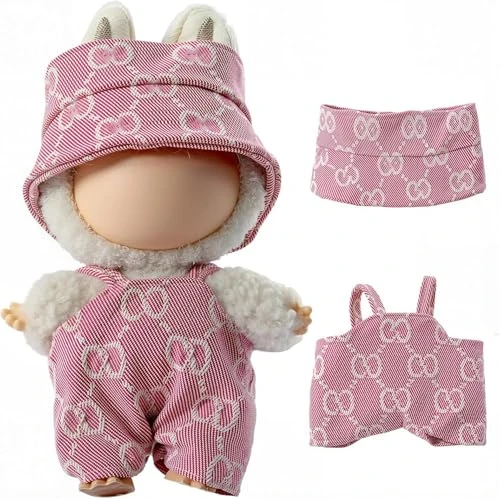 Clothes For LABUBU Doll(NO Doll),Pink Patterned 2 Piece Outfit Set,Doll Accessories For LABUBU