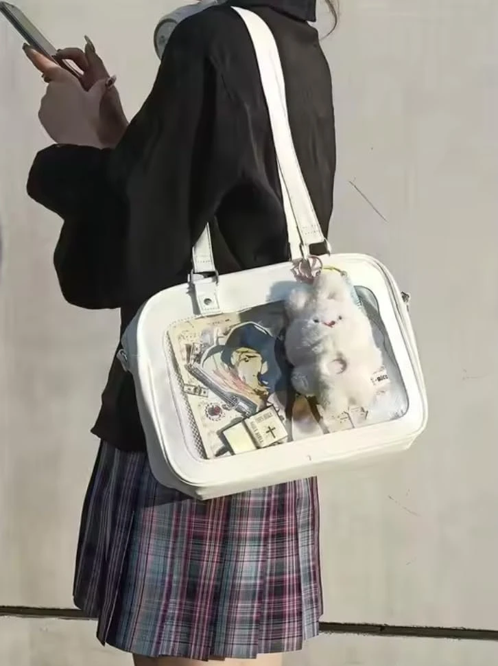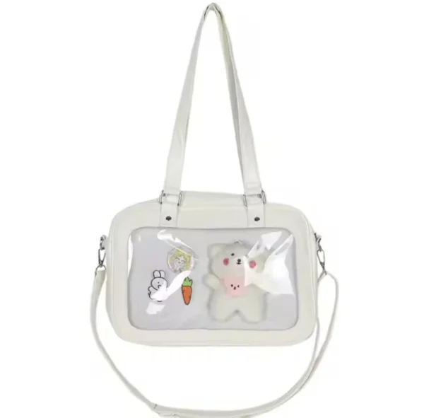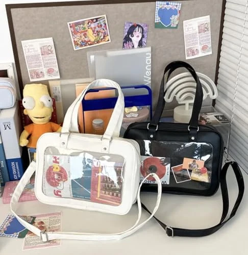 Womens Ita Bag Crossbody Tote – Messenger Shoulder Bag For Anime, Kawaii, Pin & Plushie Display | Clear Front, Mesh Insert|