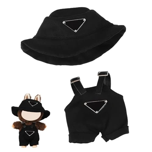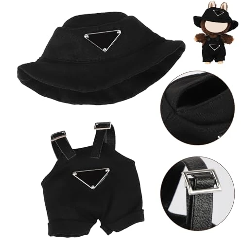 17cm Clothes Set For Doll , Handcrafted Dress Up Unique Overalls Set & Style Hat Cute Clothes For 17cm Doll Accessories Suit, Cute Clothes For Doll Not Included (Black)