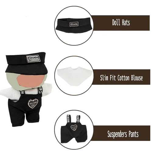 17cm Clothes Set(NO Doll), Hat & Overalls Set For 17cm Accessories Suit, Cute Clothes For Dress Up Unique Style (Black1)