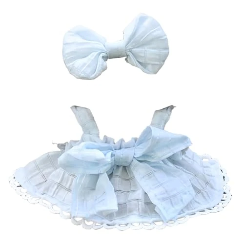 Doll Clothes Compatible With Labubu Fashion Doll Dress And Bow Made For La Bubu ,Dress Up Skirt Accessories (Blue)