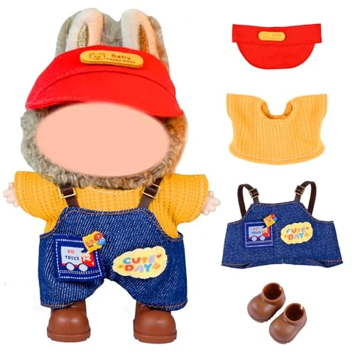 Doll Clothes Set And Accessories For Labubu (No Doll), 2025 Stylish Exquisite Adorable Designed Clothes Outfit For Labubu 15cm/17cm Doll With Red Hat & Overalls & Brown Shoes